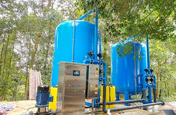 項目名稱:湖水凈化工程 設(shè)備名稱:50噸壓力式一體化凈水設(shè)備 工藝流程:湖水-水箱曝氣消毒-絮凝加藥-石英砂過濾器-活性炭過濾器-精密過濾器-二氧化氯加藥器-凈水池-各用水點...
