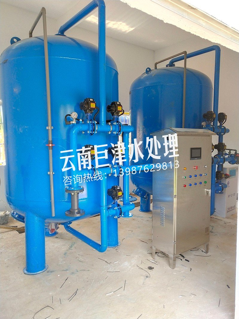 項(xiàng)目名稱:云南三猛鄉(xiāng)河水凈化工程 設(shè)備名稱:30噸壓力式凈水設(shè)備 工藝流程:河水-石英砂過濾器(二級(jí)過濾)-二氧化氯消毒...