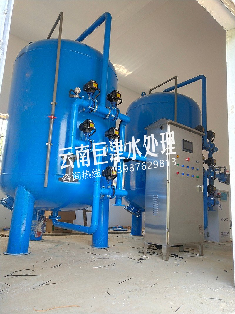 工藝流程:河水-石英砂過濾器(二級(jí)過濾)-二氧化氯消毒
