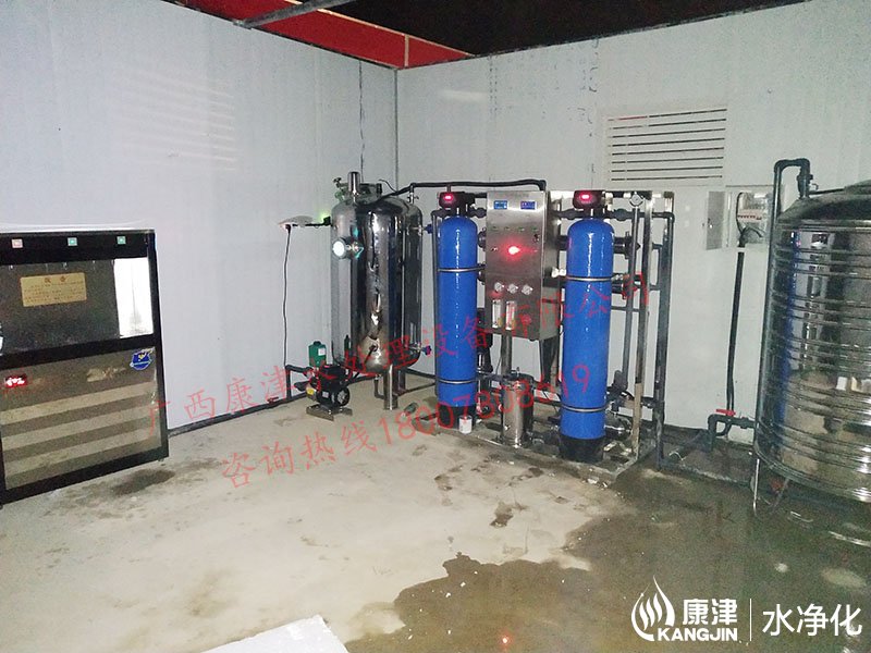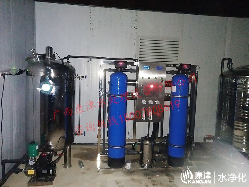 工藝流程:原水箱-原水泵-石英砂過濾器-活性炭過濾器-精密過濾器-反滲透設(shè)備-凈水箱-變頻供水-直飲機(jī)